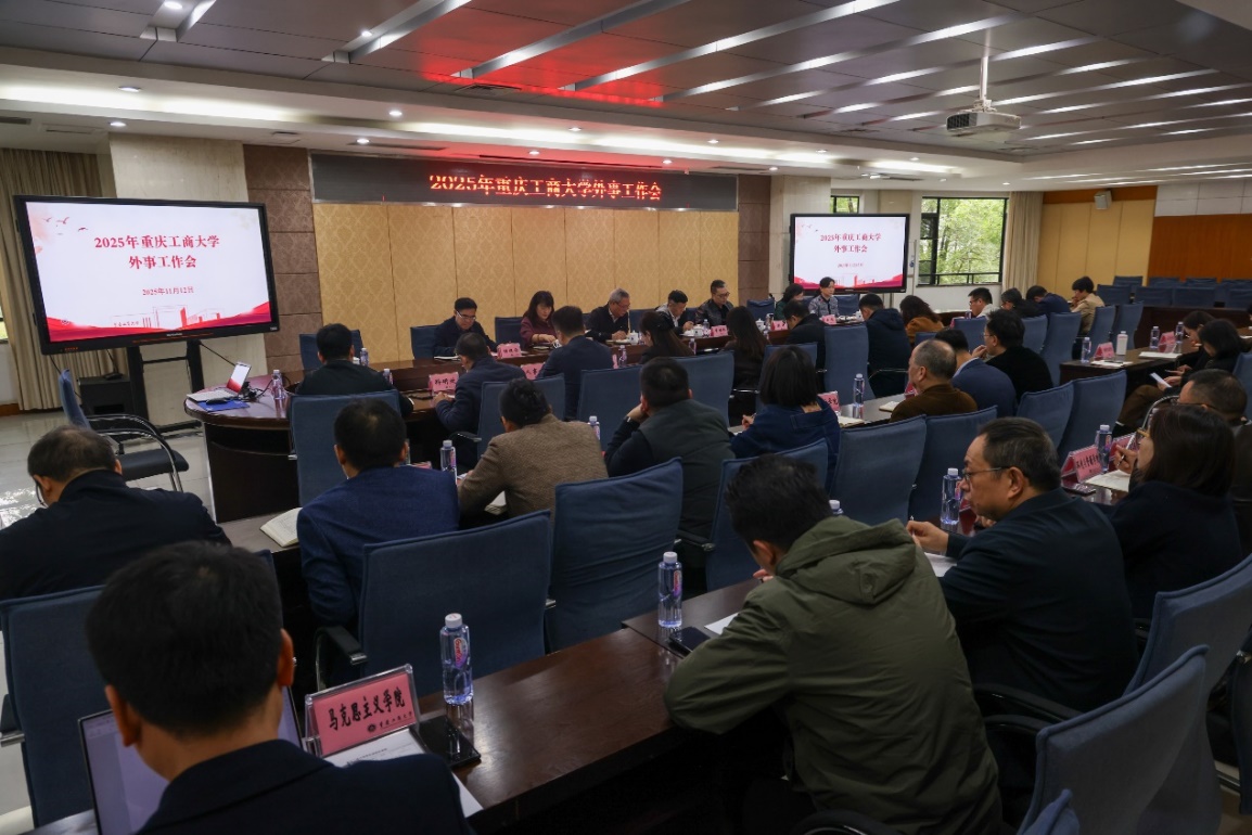 2025年11月12日上午,重庆工商大学2025年外事工作会议在厚德楼2017会议室顺利召开。会议聚焦深入学习党的二十届四中全会精神、习近平总书记关于教育对外开放和打造重庆内陆开放综合枢纽的重要讲话精神,全面总结了学校在“十四五”时期国际化办学的成果,并精心谋划了“十五五”开放办学的全新蓝图。