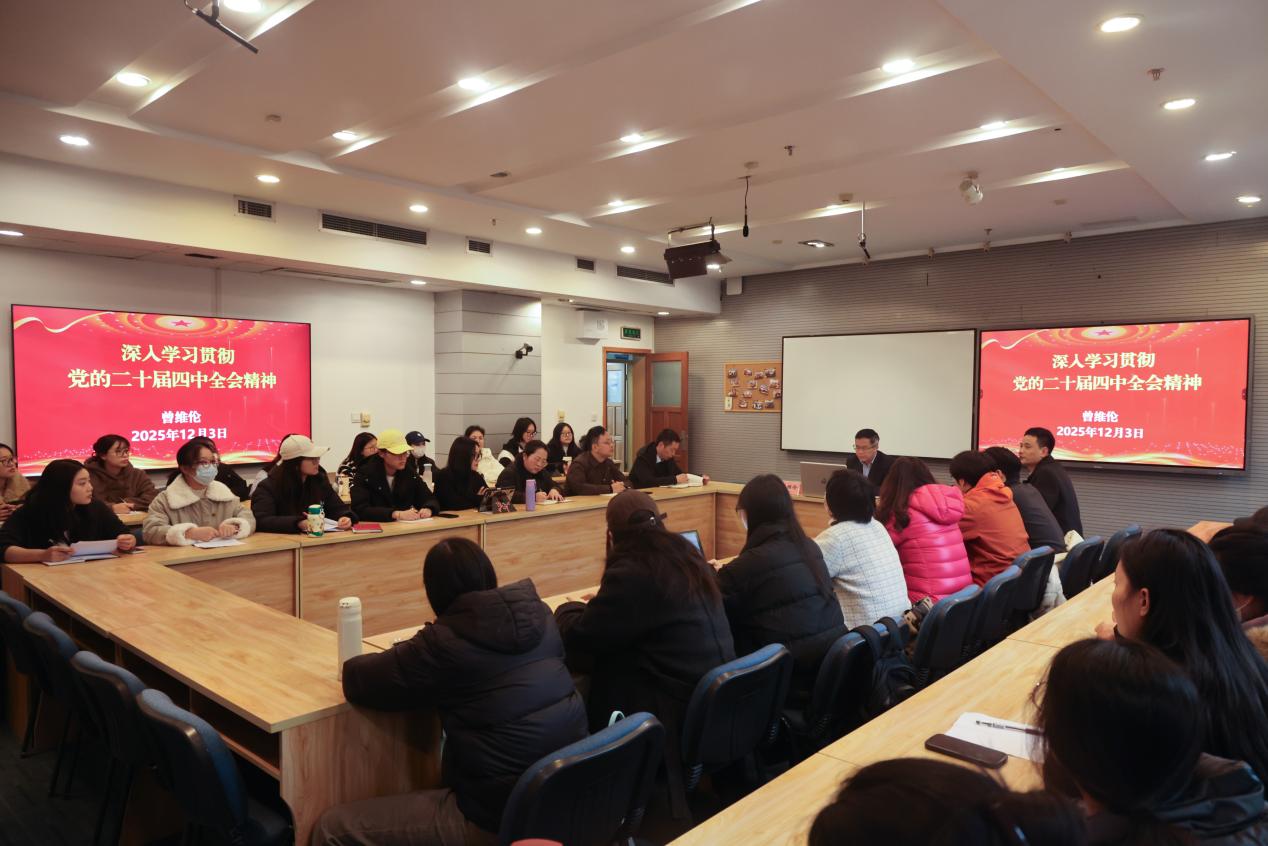 12月3日下午,重庆工商大学学习贯彻党的二十届四中全会精神校园宣讲小队队长、党委书记曾维伦在启智楼80412C会议室,为党委宣传部与马克思主义学院师生代表宣讲党的二十届四中全会精神。