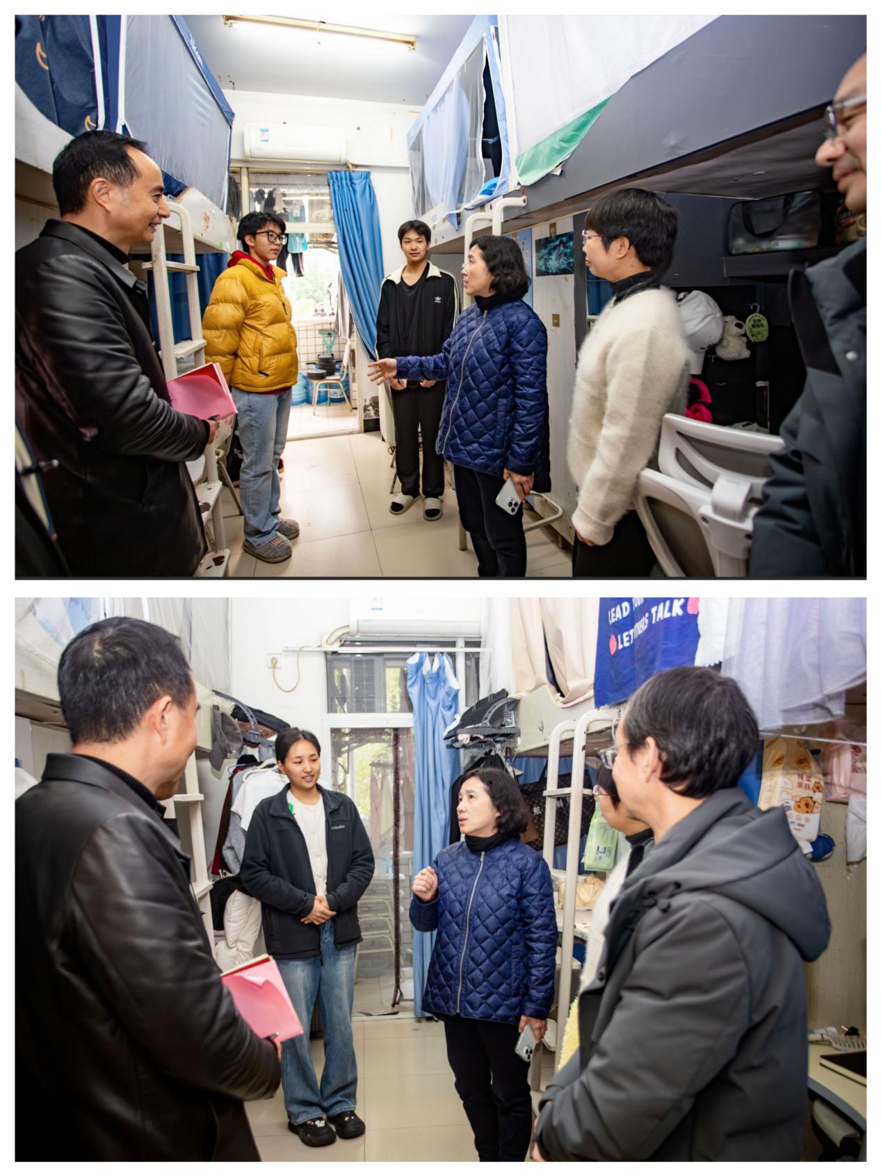 座谈会结束后,柏群一行深入学生寝室走访慰问,与同学们亲切交谈,了解同学们学习生活情况以及相关诉求,让少数民族学生深切感受到学校的关怀与温暖。