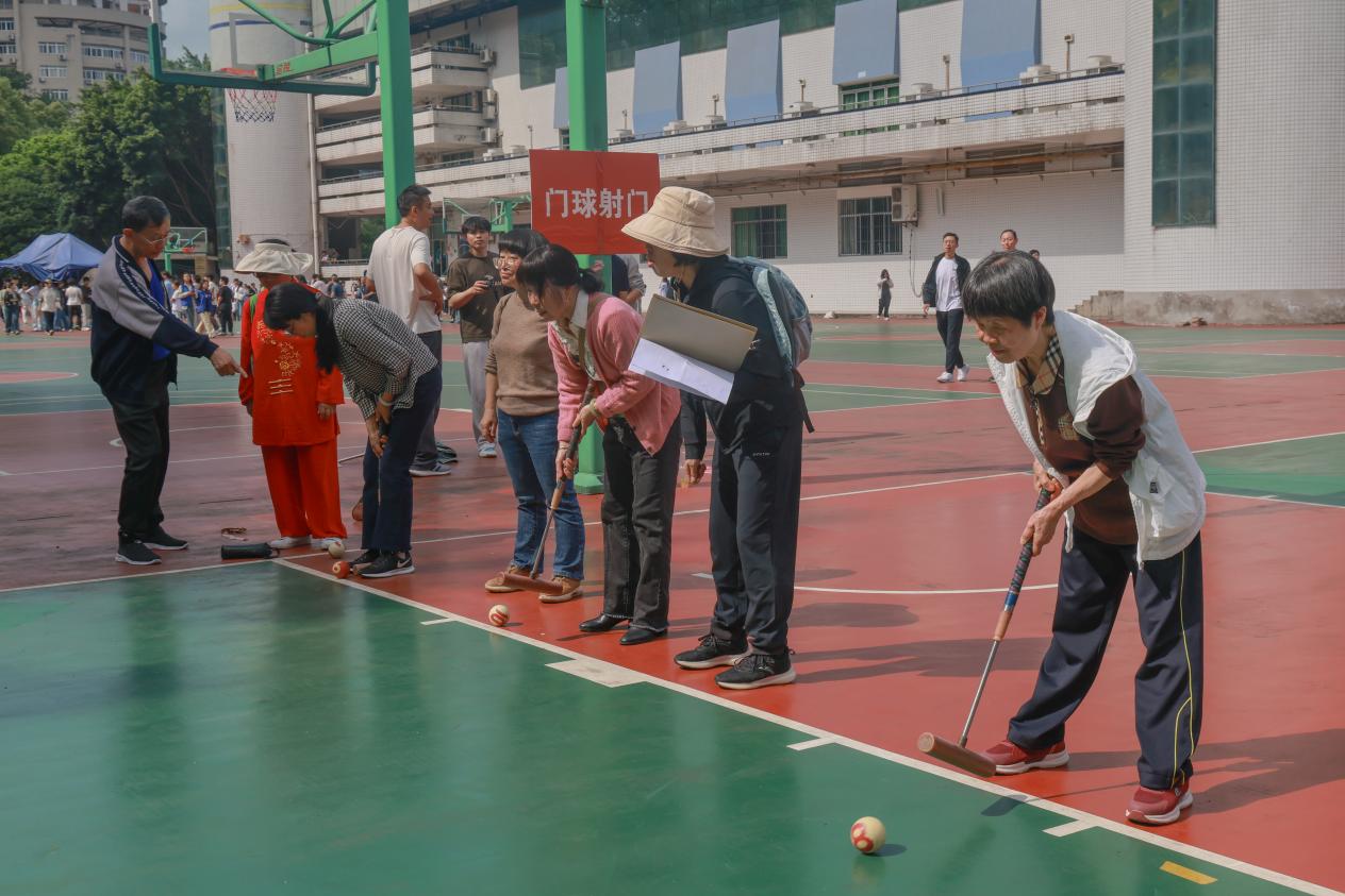与此同时,第二十四届离退休老同志运动会正在南区篮球场进行。老同志们精神矍铄、兴致盎然,以轻松愉悦的方式参与运动、乐享健康,展现出重工商大离退休教职工积极乐观的生活态度。