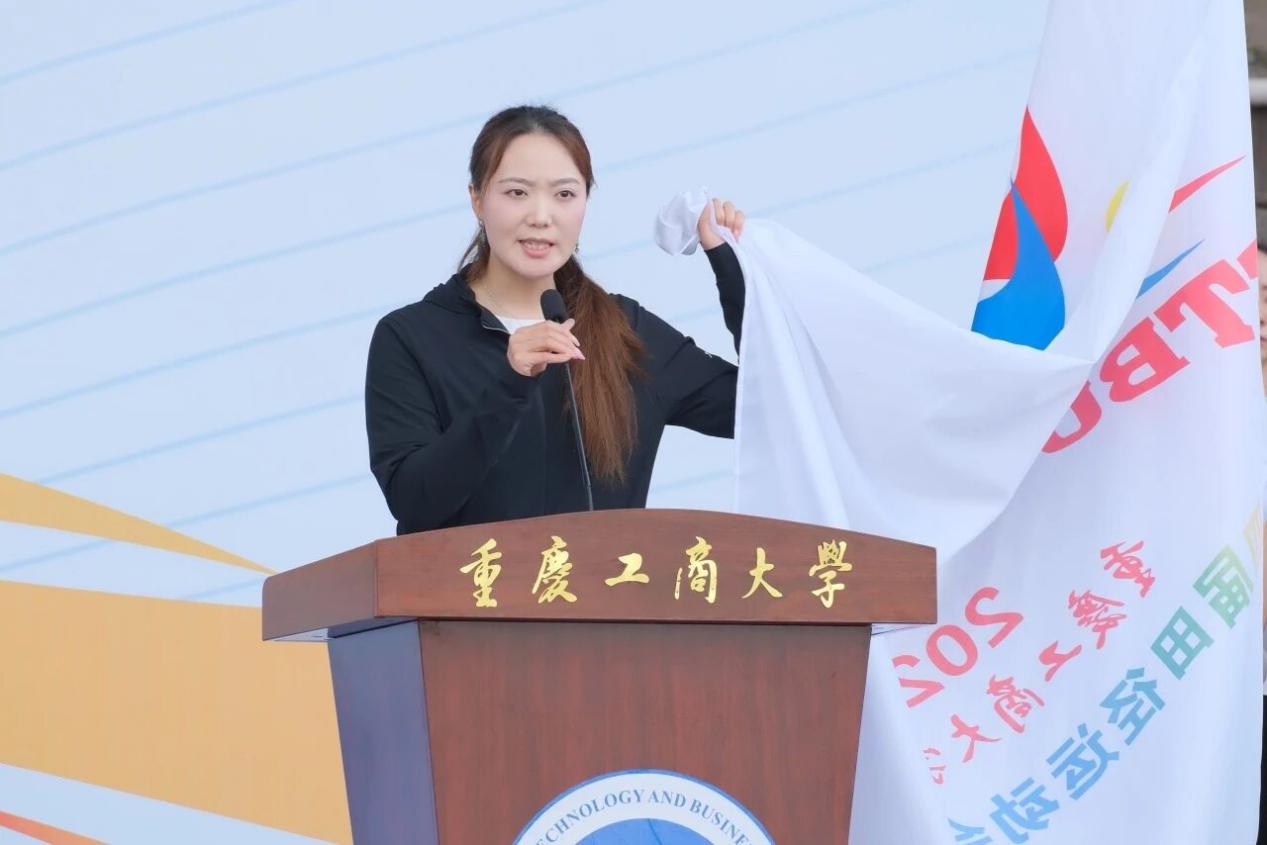 食品科学与工程学院邓秋玉、体育学院教师王珊分别作为裁判员和运动员代表庄严宣誓,承诺以公平公正的态度和拼搏进取的精神参与赛事。