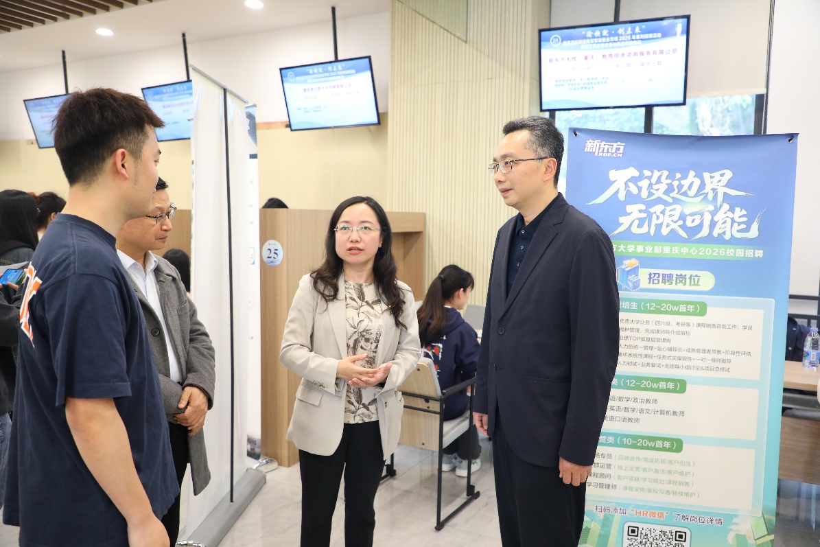 值得一提的是,本次活动特设“2027届实习生专区”,提前为低年级学生搭建实践桥梁。专区汇聚了十余家开放实习岗位的优质企业,提供从暑期实习到学年跟岗的多种实践机会。“红岩·长江”育人工作室负责人朱洁教授把课堂搬到了招聘会现场,她表示,这是落实就业工作“关口前移”的重要举措,旨在帮助2027届学生尽早接触职场、明确职业方向,为帮助他们未来高质量就业打下坚实基础。